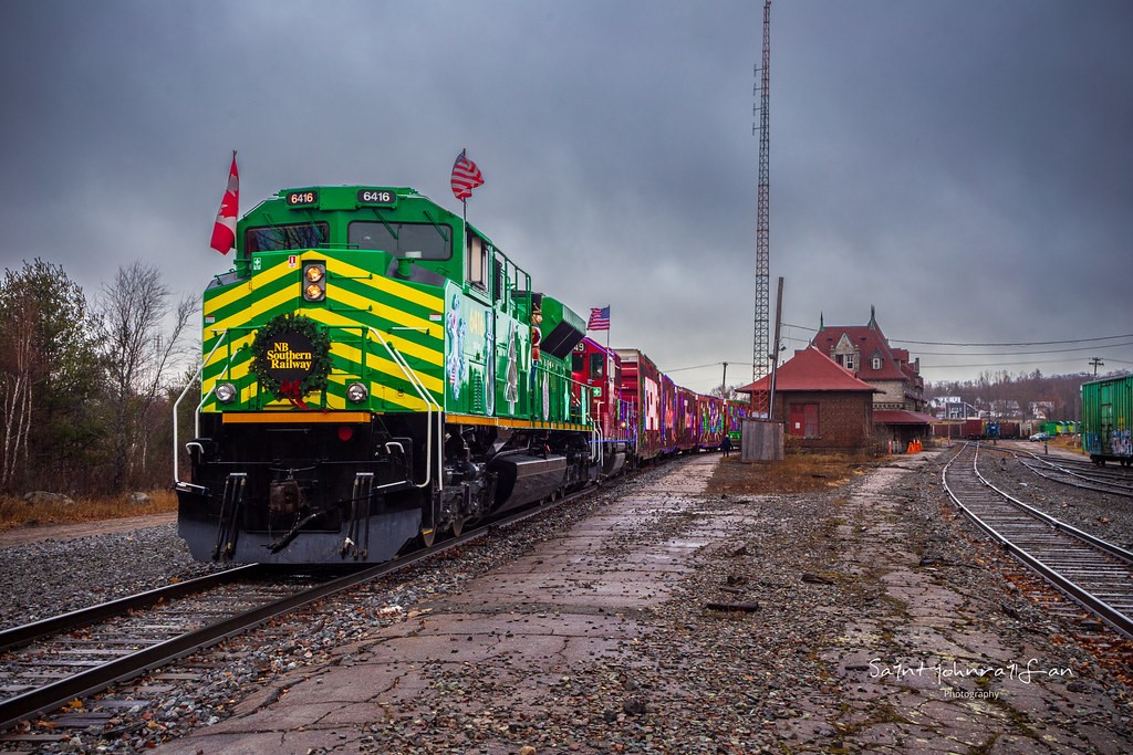 Caption: For the first time in it's history, the CPKC holiday train has made it's way onto New Brunswick soil. After performing in Saint John the night before, the holiday train is seen here parked at the station in McAdam, New Brunswick for a small performance before continuing west into Maine.