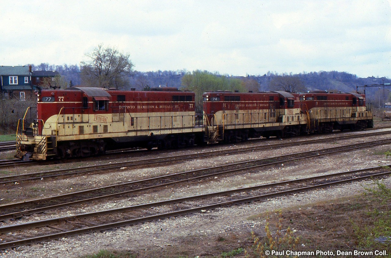 Caption: TH&B GP7 77, TH&B GP7 74, and TH&B GP7 76 at Aberdeen.