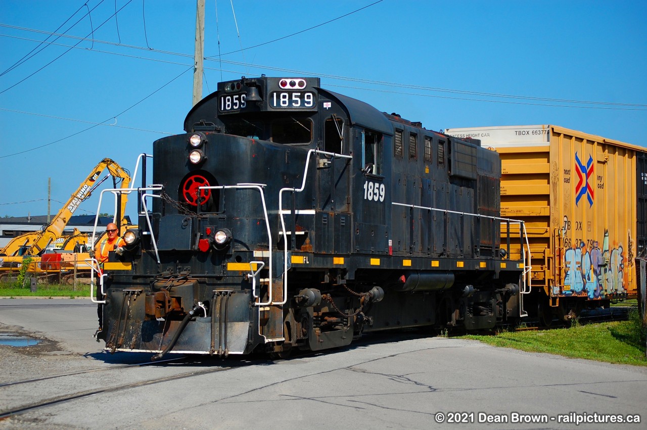 TRRY RS18u 1859 pulls cars out of the WP warehouse at Berryman Ave.