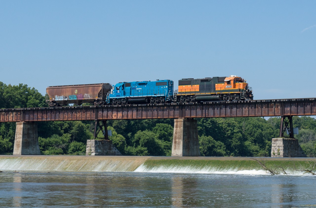 Another neat capture Joe! Today after setting off cars at Nicholson & Cates, CN 580 crossed the Grand River light power with CN 4960 leading southbound. Returned Brantford with Monday’s three hoppers from Railview Transload, Hagersville. No Rail service at CGC yet albeit loading / movement of centre-beams has resumed.