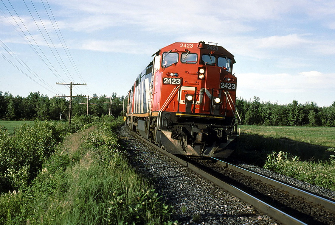 Caption: CN 205 rounds the curve at a good speed well equipped in power.