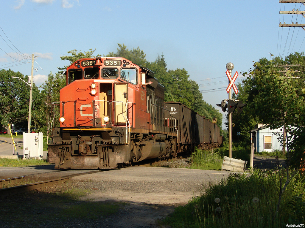 CN W908 - CN 5351 North heads North on CN\'s Bala sub about to knock down a clear signal on the home at North Parry, they\'ll go in the hole at Waubamik for a 102 before having a clear run back to Capreol with 8 loaded tie cars from South Parry.