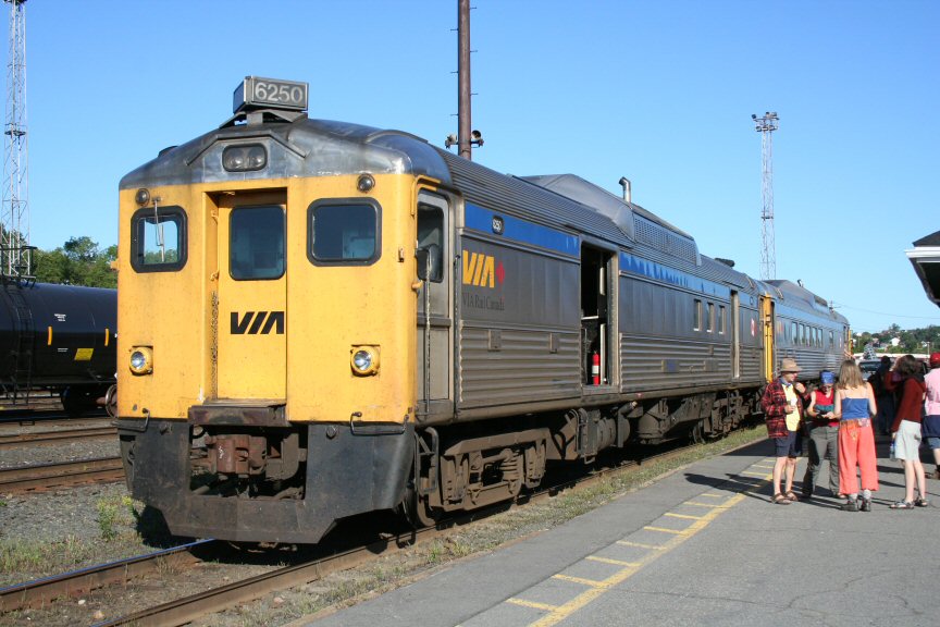 VIA 185, the Sudbury-White River local passenger train, loads passengers and baggage at Sudbury.