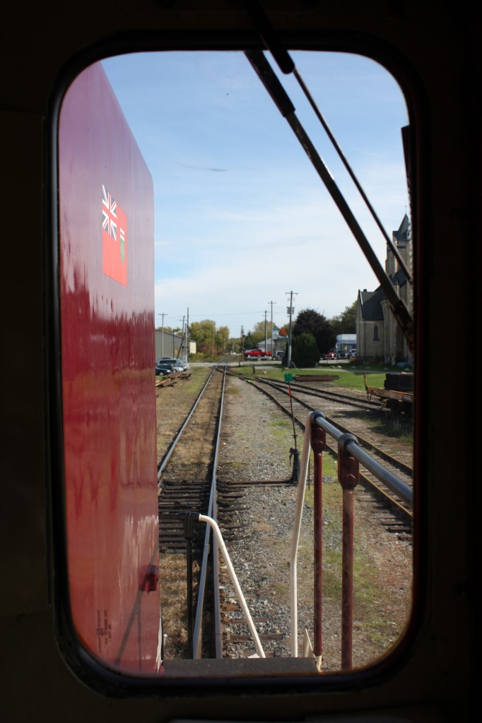 Inside view of OSR GP7 378 rolling through Ingersol on its way to Woodstock.