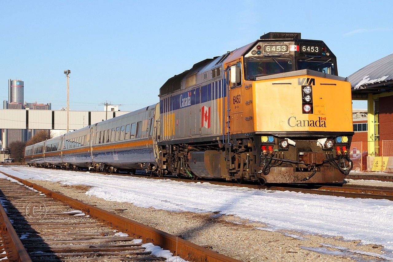 Caption: VIA 6453 with Windsor to Toronto train 72 readies for departure from the Windsor (Walkerville) station. The 6453 was the last of the VIA units to go through the CAD rebuild program. As nice as the rebuilds look, I sure do miss that bright yellow nose.
