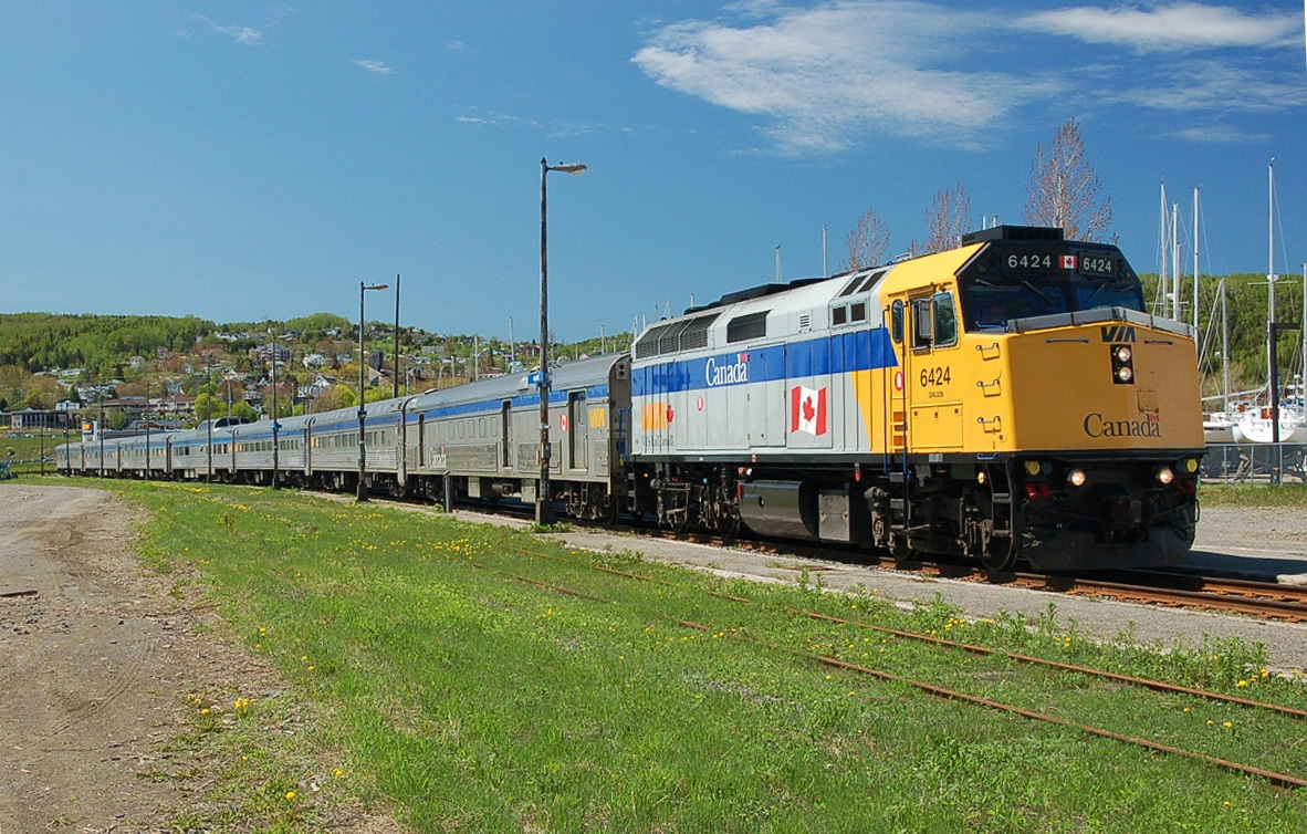 Caption: After turning on the wye, the Chaleur, with VIA F40PH-2 6424 on the point, is ready for its westbound return trip from Gaspe. For more pics from my collection see northamericabyrail.info