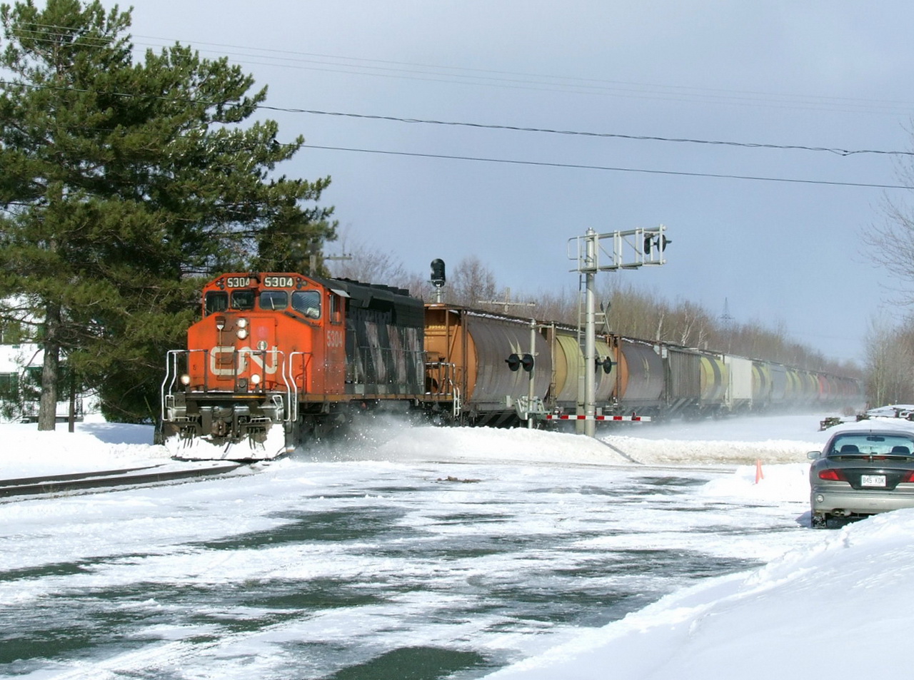 CN 899 has enough power with a single sd40-2 to bring those empty grain cars back to Thunder Bay.