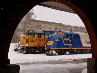 ![Strong snow squalls that pounded the Kitchener-Waterloo area let up as light power (FP9 RLK 1400 with GEXR 3821 out of frame) framed by the VIA station arches, head west after rescuing 584's train up in Elmira on the Waterloo Spur. In the background power for GEXR 433 [Kitchener to London turn] readies for it's day's duties.](http://www.railpictures.ca/wp-content/uploads/2011/08/DSC_0143-200x150.jpg)