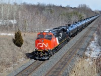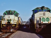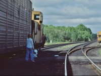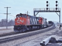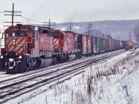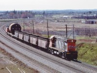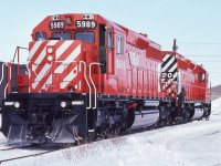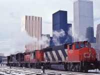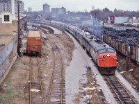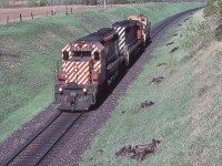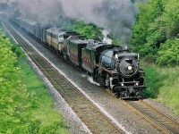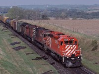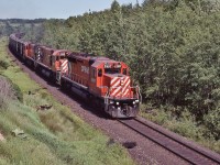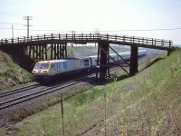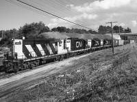 Extra 6060 west, with seven blue with yellow stripes CC&F cars, Ottawa to Toronto via the now lifted Smiths Falls subdivision - at 25 mph, then onto the Kingston sub, west of Napanee the engineman let 6060 run: at 80+ mph, sounded like the Turbo !