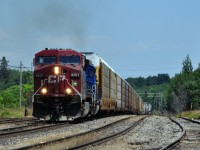 Extra 6060 west, with seven blue with yellow stripes CC&F cars, Ottawa to Toronto via the now lifted Smiths Falls subdivision - at 25 mph, then onto the Kingston sub, west of Napanee the engineman let 6060 run: at 80+ mph, sounded like the Turbo !