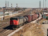 Extra 6060 west, with seven blue with yellow stripes CC&F cars, Ottawa to Toronto via the now lifted Smiths Falls subdivision - at 25 mph, then onto the Kingston sub, west of Napanee the engineman let 6060 run: at 80+ mph, sounded like the Turbo !