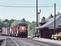 Extra 6060 west, with seven blue with yellow stripes CC&F cars, Ottawa to Toronto via the now lifted Smiths Falls subdivision - at 25 mph, then onto the Kingston sub, west of Napanee the engineman let 6060 run: at 80+ mph, sounded like the Turbo !