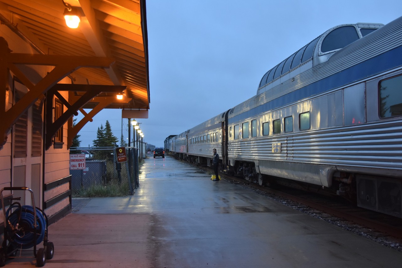 A wet day in Churchill, love the light reflection on the side of the heritage cars . . . “All aboard” ! Well done Paul !