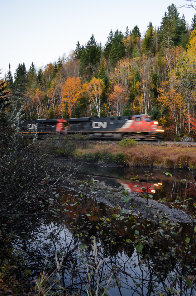 Caption: CN 2245 leads a five-unit lashup on CN 368 (trailing are CN 2232, CN 2685, CN 8873 & CN 2323, not all powered) heading north through CN's remote and scenic Lac St-Jean sub. For more train photos, check out http://www.flickr.com/photos/mtlwestrailfan/
