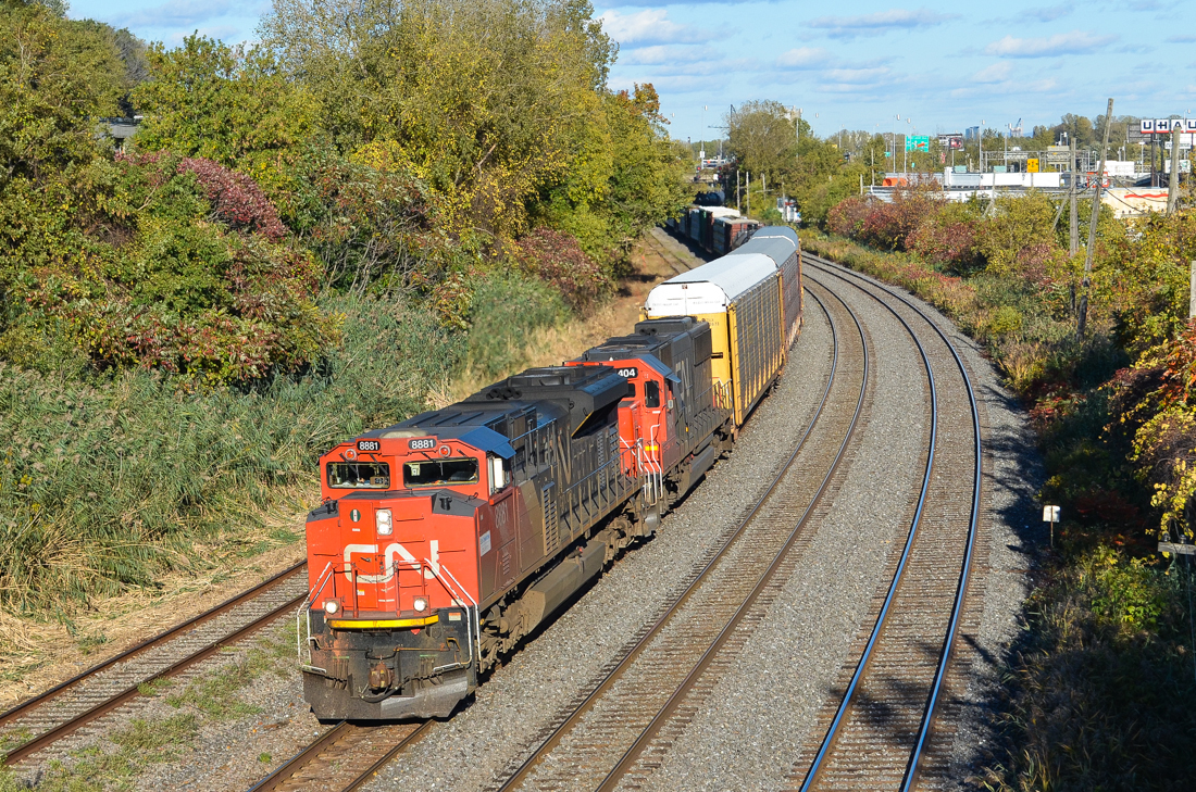 CN 8881 & CN 5404 lead CN 401 westwards through Montreal West. For more train photos, check out http://www.flickr.com/photos/mtlwestrailfan/