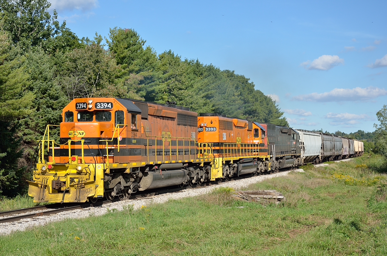 Caption: GEXR train climbs the grade west of Kitchener in the mid-afternoon.