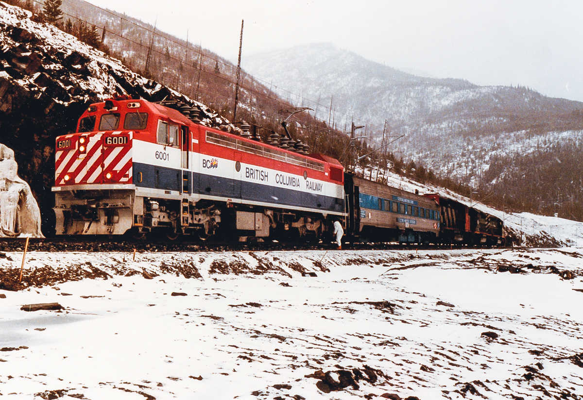 Caption: Testing a B.C. Rail Electric. Photo taken by Glen Fisher, my father-in-law. He is is a railway consultant and was involved in the BC Rail Tumbler Ridge electrification during the early 1980s. This shot shows testing of the GF6C locomotives before regular service on the line began. All have since been retired and the line deelectrified. Behind BCOL 6001 is EMD test car ET840 and behind that are three SD40-2s (1 CN & 2 BC Rail). Unknown location, please let me know if you have information on the exact location.